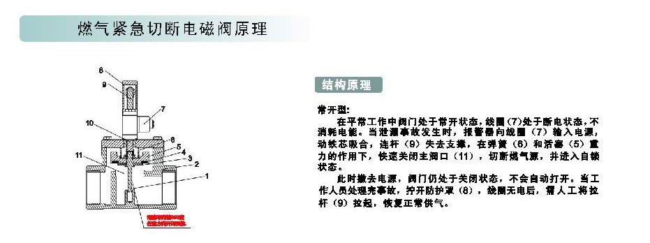 常開型燃氣緊急切斷電磁閥工作原理: