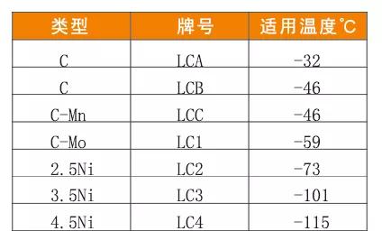 ASTMA352中最常用的三個牌號為用于-46℃的LCB\LCC,用于-101℃的LC3.對于低于-101℃以下至-196℃的工況條件下一般次啊用奧氏體鋼鑄件,如CF8、CF8M。